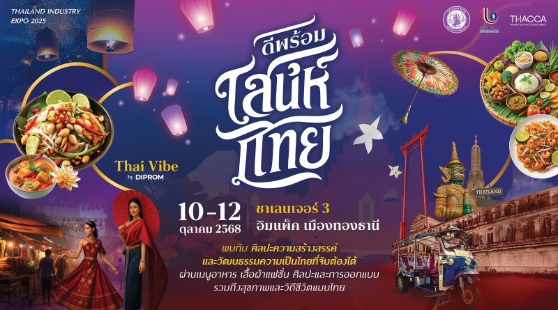 ‘ดีพร้อม’ ชวนร่วมงานมหกรรม ‘ดีพร้อมเสน่ห์ไทย (Thai Vibe by DIPROM)’ ร่วมสัมผัสเสน่ห์ความเป็นไทยไปพร้อมกัน ตั้งแต่ 10–12 ตุลาคม 2568 อิมแพ็ค ชาเลนเจอร์ ฮอลล์ 3 เมืองทองธานี